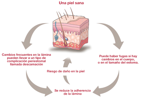- Cuando se produce una complicación de la piel periestomal, la piel sigue expuesta al riesgo de sufrir más daños y se puede entrar en un círculo vicioso.